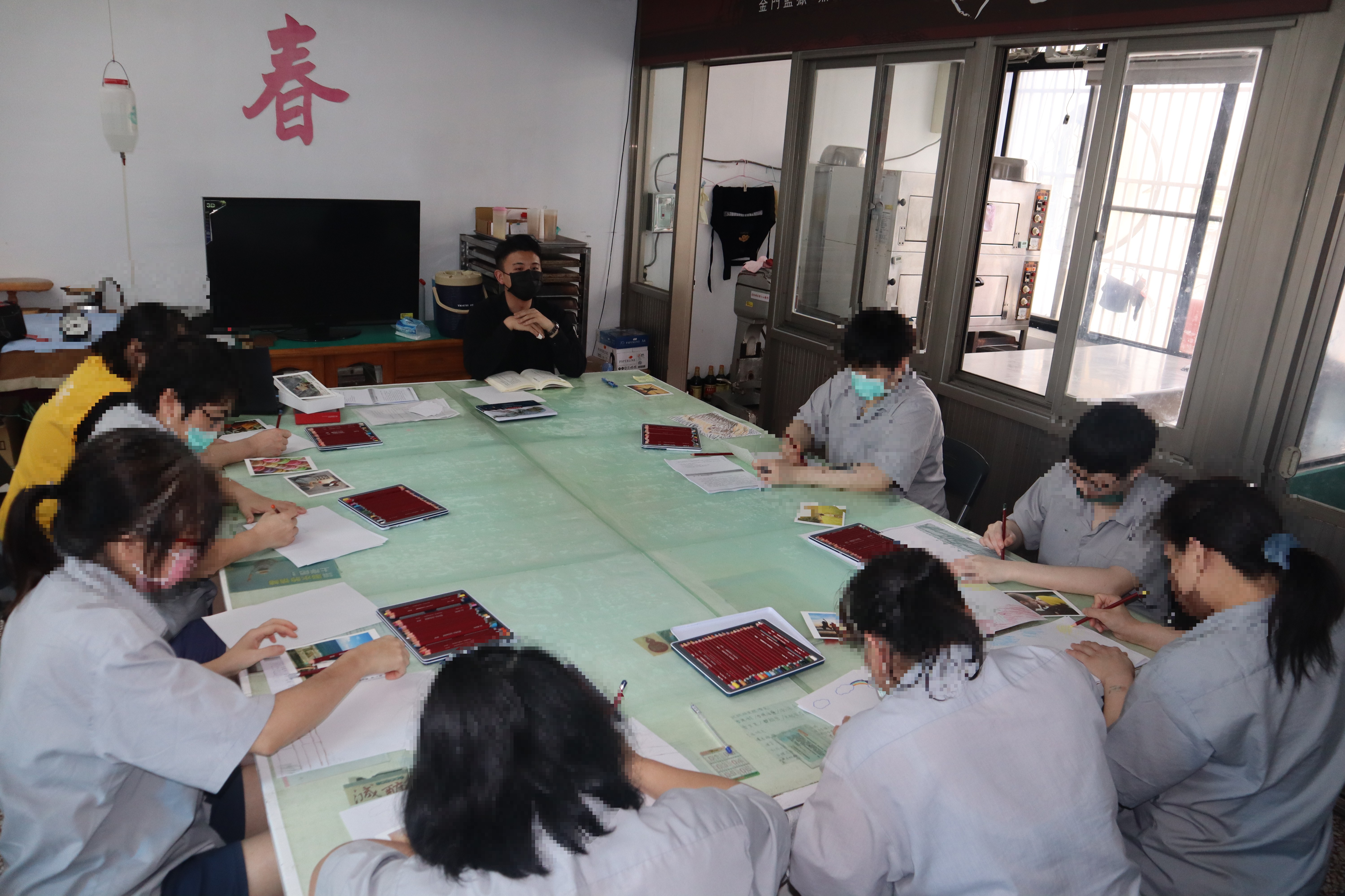本次為強化攜子入監讀書會團體輔導課程,團體一開始領導者帶領團體成員施作「正念活動」,藉由此活動讓成員安靜下來、沉澱內心並回歸內在自我。後由心輔員導讀「溫和且堅定的正向教養-如何鼓勵才有效?」,以回想「與家人互動最美好的模樣」並藉由左右手作畫方式,試圖引導成員體會親子互動技巧需找尋合適之方式,後帶入書本內容,進而講解相關鼓勵他人之技巧(講述鼓勵和稱讚的差別),後藉由講師設計之互動學習單,邀請成員實際使用相關學習之鼓勵例句(同學平時表現)進行操演,給予他鼓勵。兩人一組分享,後回大團體分享感受。